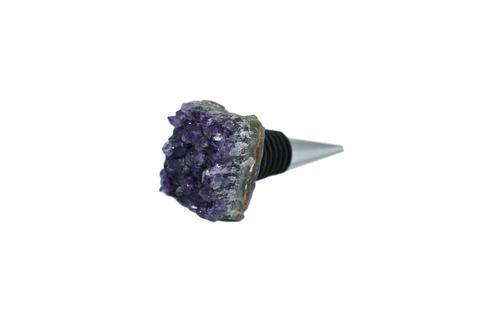 These 2-inch long wine stoppers are sure to keep your wines fresh long after the party stops. Wine stoppers include a sturdy stainless steel base with a silicone seal that keeps bottles airtight. A gorgeous gemstone specimen sits atop the stopper for an elegant look. Choose from rose quartz, white quartz, amethyst, or pyrite.