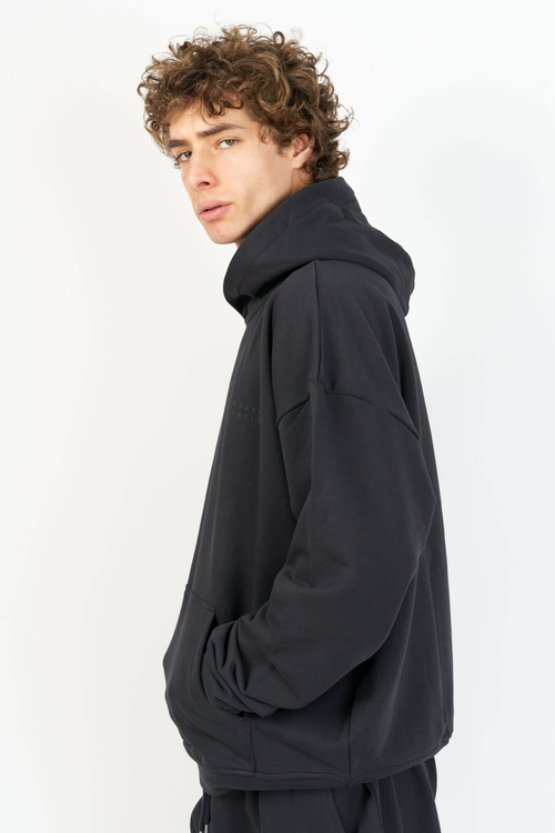 The oversized loungewear set is made from 100% Turkish Cotton. It is a medium-weight fabric, clean cut from a soft touch French Terry and a finishing that provides extra softness. The hooded sweatshirt and pants feature a subtle screen-printed logo at the chest and thigh.
