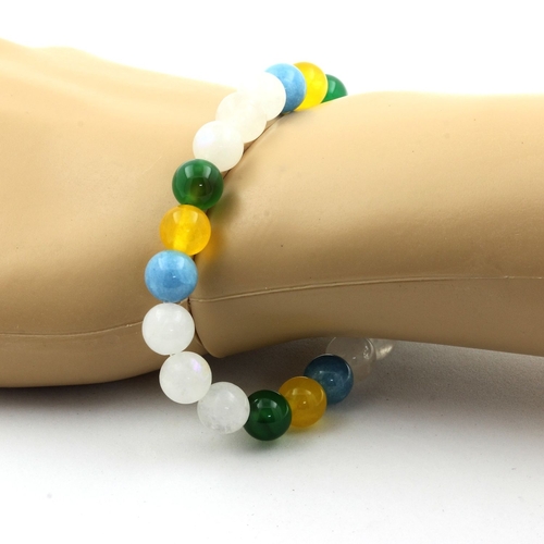 Moonstone + Yellow Agate + Green Agate + Blue Chalcedony Bracelet 8 mm Beads.