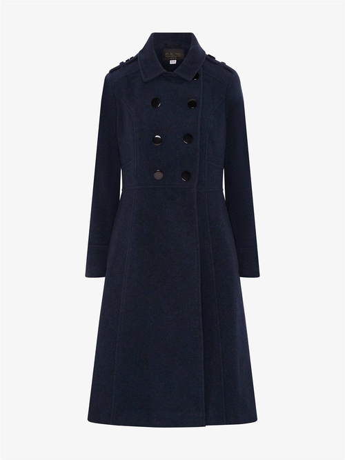 De La Creme Fashions Present the A-Line Double Breasted Coat. Featuring double breasted design, a-line fitting and rear half belt to finish. Fully lined inside. Crafted using Italian wool and cashmere blend fabric. Made in London, England using domestic and imported materials.