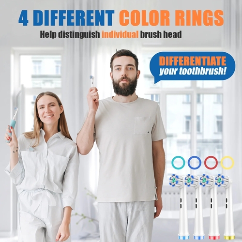 Color-Coded Convenience: Featuring four distinct color rings, easily differentiate and allocate brush heads among family members for hassle-free sharing.