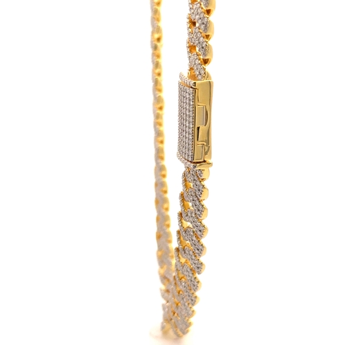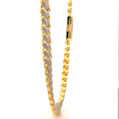 SELVIK; This premium quality silver cuban chain is trendy and long lasting. Adorned with white moissanite stones beautifully, this piece is sure to make a statement. Get your hands on it before it runs out of your access.