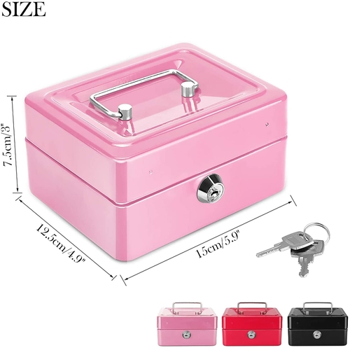 Small Metal Money Bank with Lock Coin Cash Safe Box Piggy Bank