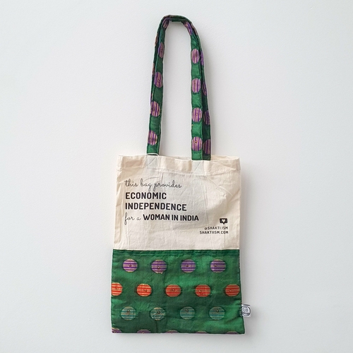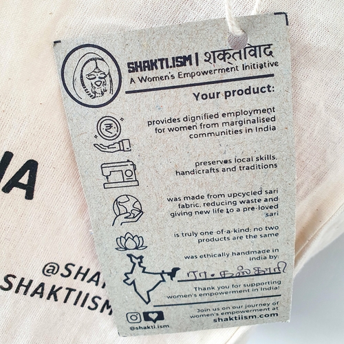 The makers earn fair wages for making these bags, so your purchase directly impacts the lives of disadvantaged women! Each set of bags is made from the off-cuts of one sari, so colours and patterns may vary depending on which piece of the sari was used.
