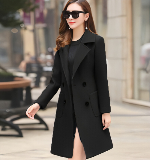This knee-length tweed coat for women blends vintage elegance with everyday practicality. Its structured fabric shields you from the wind, while the tailored fit enhances your form – perfect for autumn strolls, winter days, and urban style.