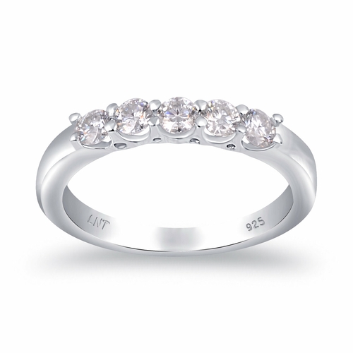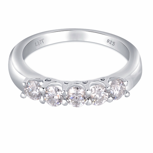 White Moissanite 5-Stone Ring Sterling Silver